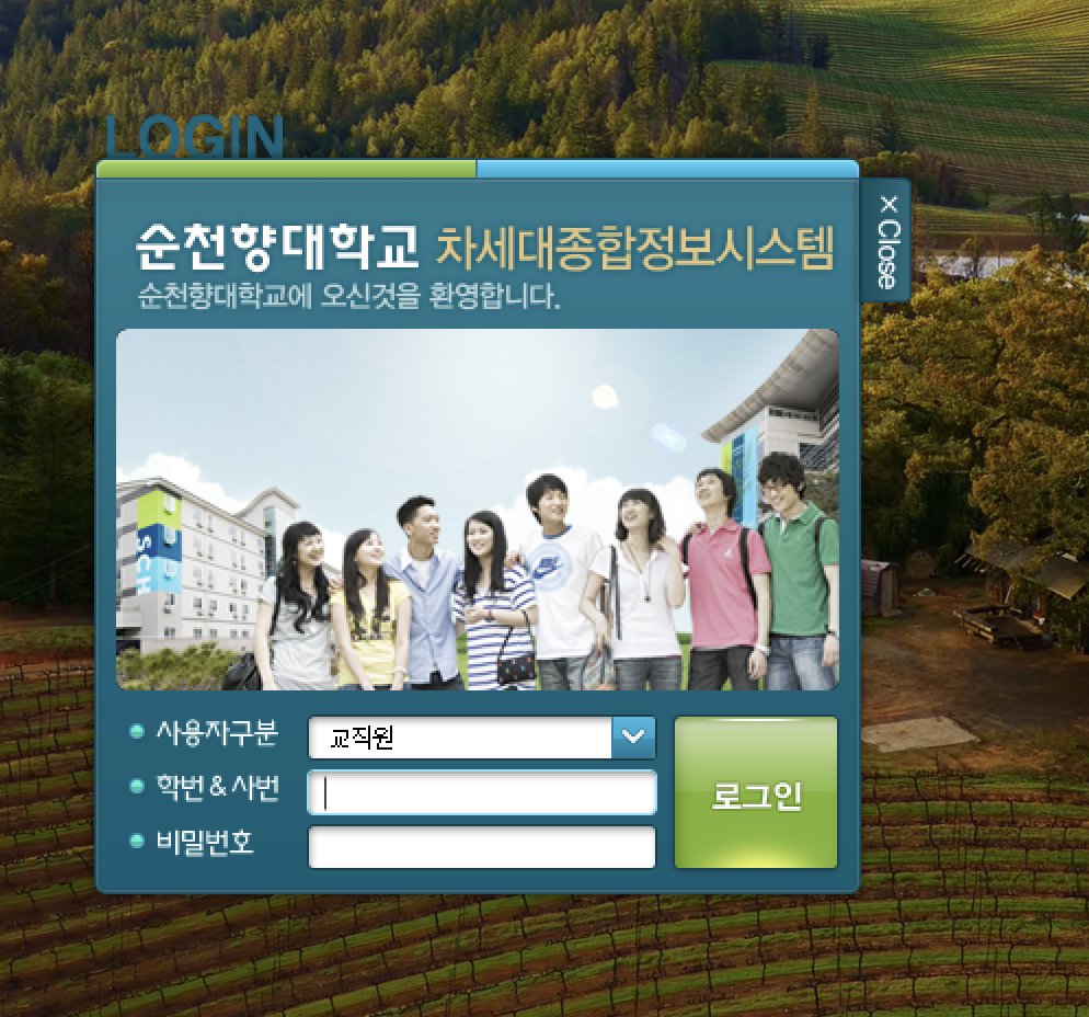 본 소프트웨어는 순천향대학교 포털 소프트웨어를 임의로 가공한 것으로, 학내 구성원의 개인적인 목적으로만 사용을 허가하며, 본 소프트웨어를 사용함으로 인해 생기는 모든 책임은 사용자에게 있음을 알립니다.
